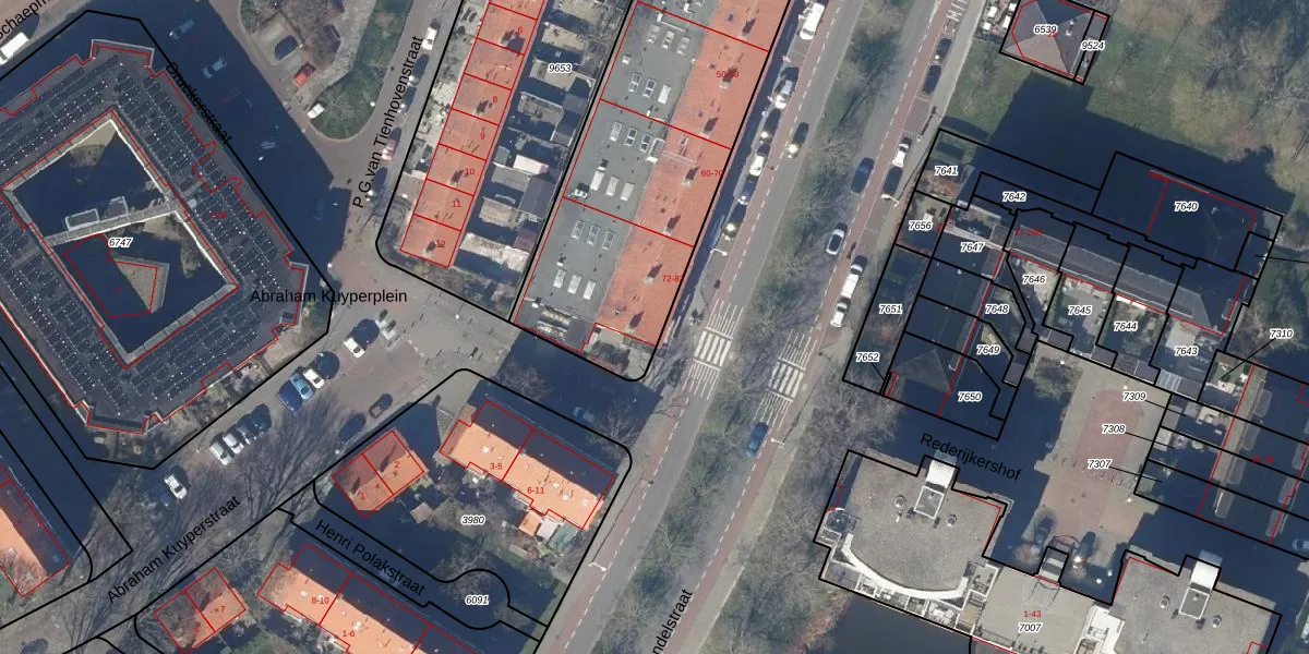 Het perceel waarop Vondelstraat 82 staat heeft een oppervlakte van 2455 m². Dit is een zeer groot perceel. De perceeloppervlakte wordt geregistreerd door het Kadaster. Gedetailleerde informatie over de maten van dit perceel kunt u vinden in het rapport Kadastrale kaart met maatvoering van Vondelstraat 82.
