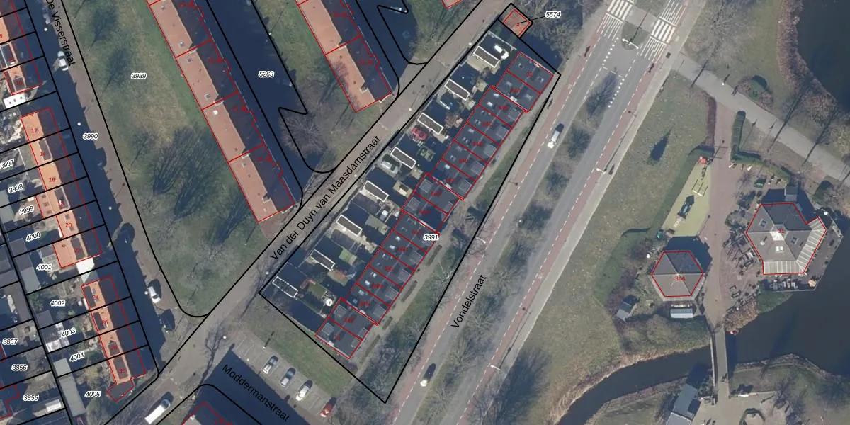 Het perceel waarop Vondelstraat 84-H staat heeft een oppervlakte van 2551 m². Dit is een zeer groot perceel. De perceeloppervlakte wordt geregistreerd door het Kadaster. Gedetailleerde informatie over de maten van dit perceel kunt u vinden in het rapport Kadastrale kaart met maatvoering van Vondelstraat 84-H.