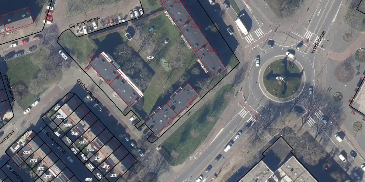 Het perceel waarop Vondelstraat 98 staat heeft een oppervlakte van 4804 m². Dit is een zeer groot perceel. De perceeloppervlakte wordt geregistreerd door het Kadaster. Gedetailleerde informatie over de maten van dit perceel kunt u vinden in het rapport Kadastrale kaart met maatvoering van Vondelstraat 98.