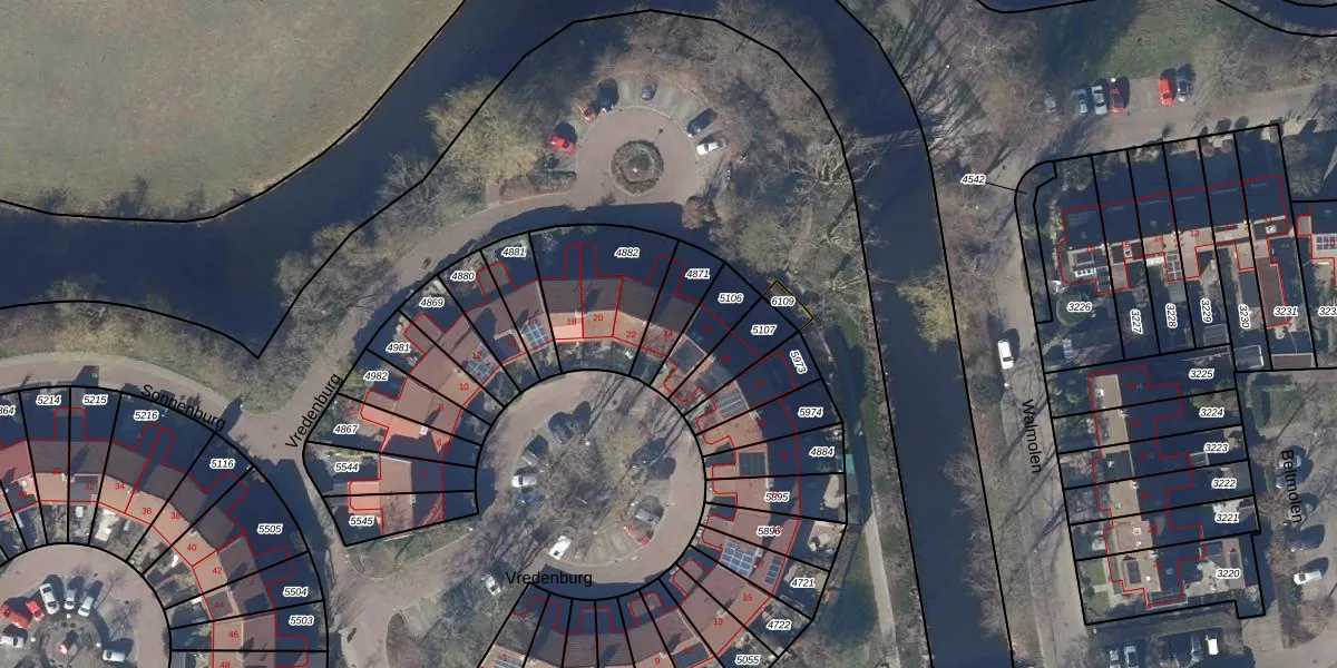 Gebruik de zoekbalk of klik op een perceel voor informatie over de adressen binnen dit perceel.
