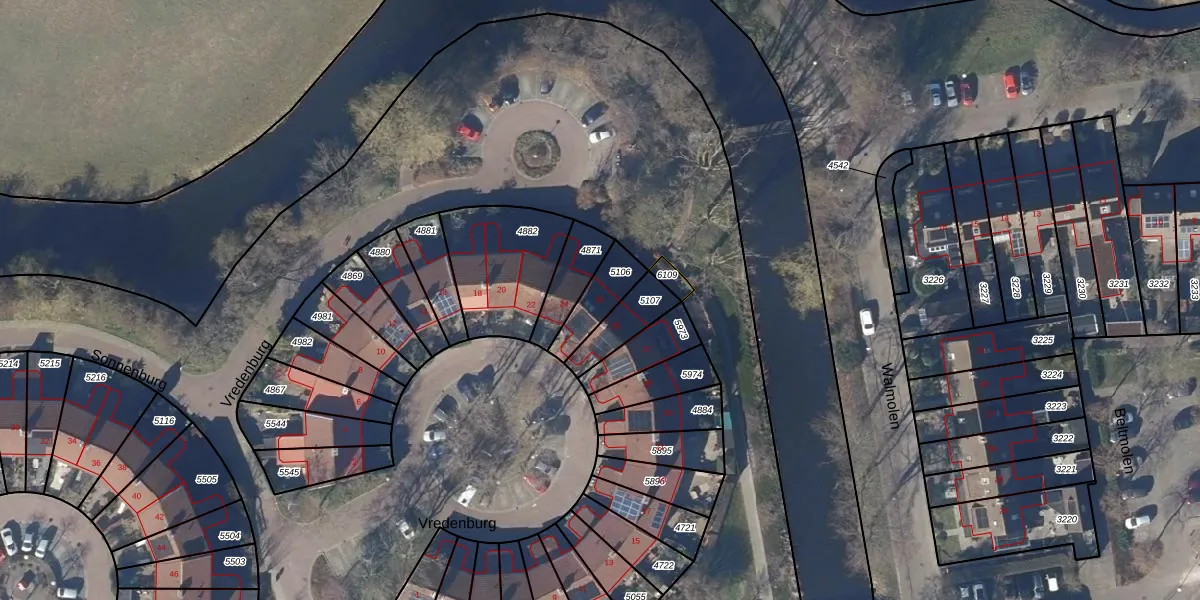 Gebruik de zoekbalk of klik op een perceel voor informatie over de adressen binnen dit perceel.