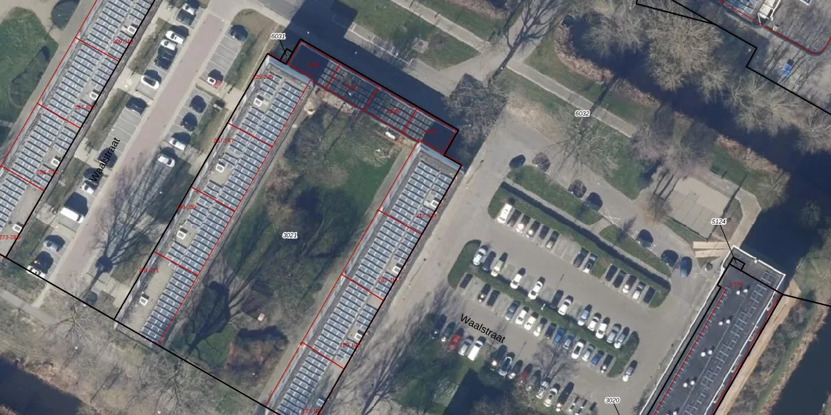 Het perceel waarop Waalstraat 213-A staat heeft een oppervlakte van 4303 m². Dit is een zeer groot perceel. De perceeloppervlakte wordt geregistreerd door het Kadaster. Gedetailleerde informatie over de maten van dit perceel kunt u vinden in het rapport Kadastrale kaart met maatvoering van Waalstraat 213-A.