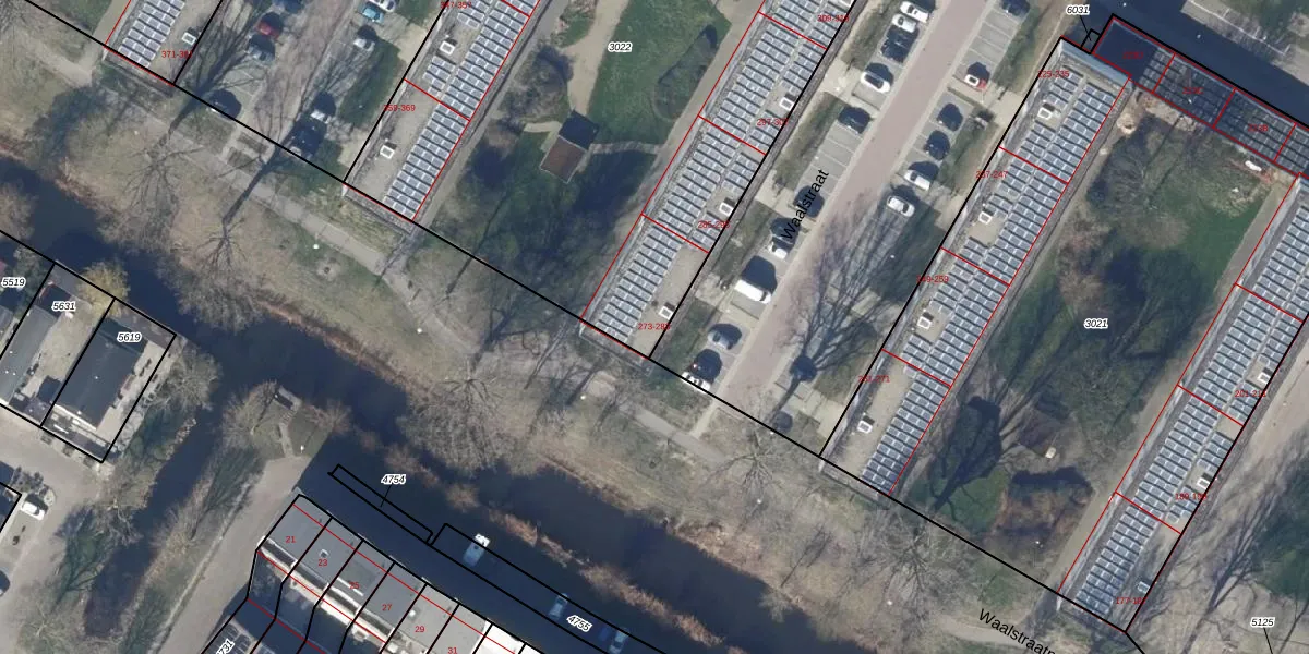 Het perceel waarop Waalstraat 273 staat heeft een oppervlakte van 4258 m². Dit is een zeer groot perceel. De perceeloppervlakte wordt geregistreerd door het Kadaster. Gedetailleerde informatie over de maten van dit perceel kunt u vinden in het rapport Kadastrale kaart met maatvoering van Waalstraat 273.