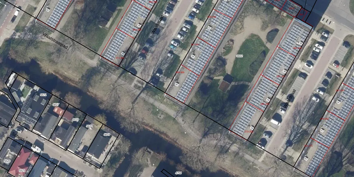 Het perceel waarop Waalstraat 361 staat heeft een oppervlakte van 4258 m². Dit is een zeer groot perceel. De perceeloppervlakte wordt geregistreerd door het Kadaster. Gedetailleerde informatie over de maten van dit perceel kunt u vinden in het rapport Kadastrale kaart met maatvoering van Waalstraat 361.