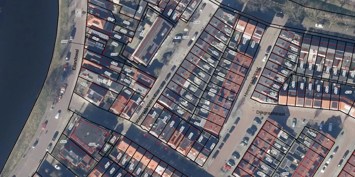 Gebruik de zoekbalk of klik op een perceel voor informatie over de adressen binnen dit perceel.