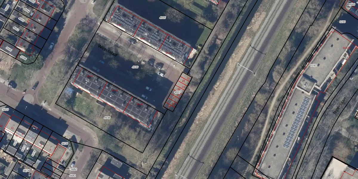 Het perceel waarop Weenixhof 25 staat heeft een oppervlakte van 136 m². Dit is een middelgroot perceel. De perceeloppervlakte wordt geregistreerd door het Kadaster. Gedetailleerde informatie over de maten van dit perceel kunt u vinden in het rapport Kadastrale kaart met maatvoering van Weenixhof 25.