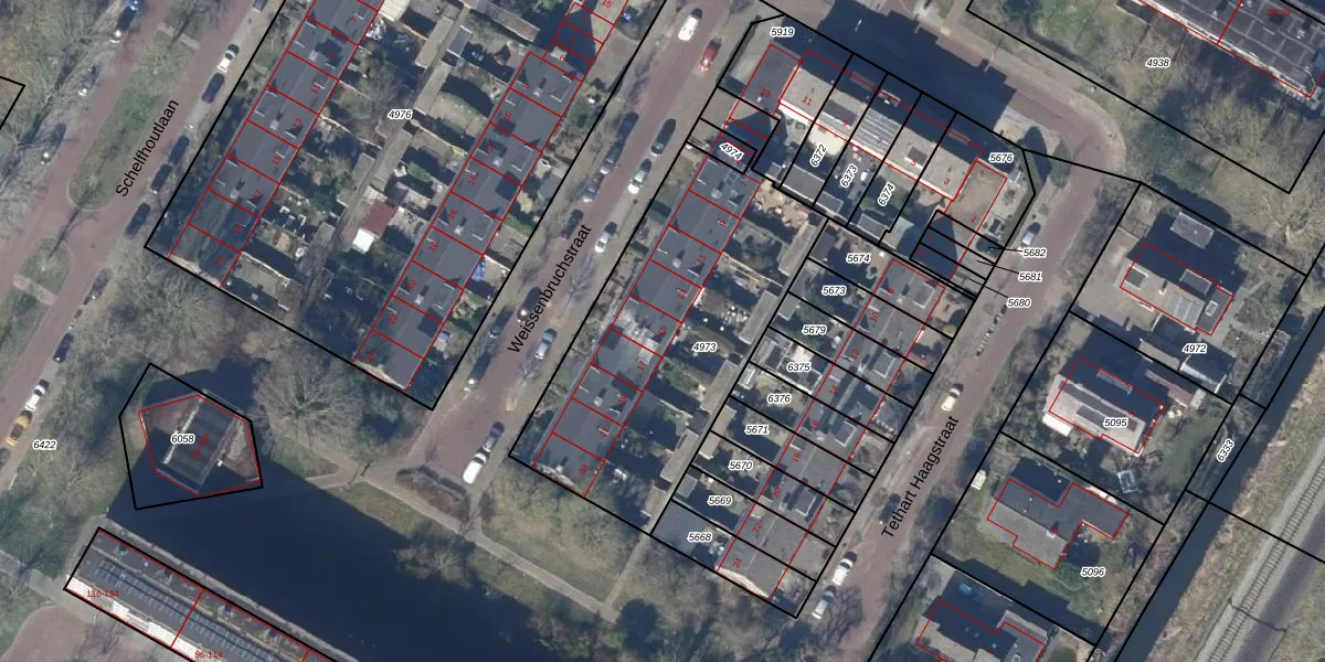 Het perceel waarop Weissenbruchstraat 15 staat heeft een oppervlakte van 1407 m². Dit is een zeer groot perceel. De perceeloppervlakte wordt geregistreerd door het Kadaster. Gedetailleerde informatie over de maten van dit perceel kunt u vinden in het rapport Kadastrale kaart met maatvoering van Weissenbruchstraat 15.