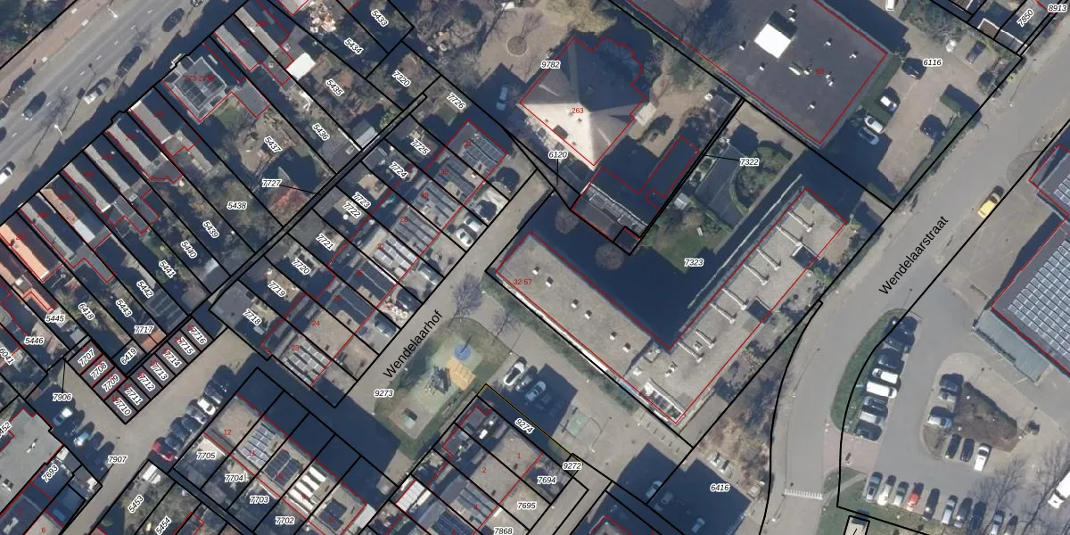 Het perceel waarop Wendelaarhof 39 staat heeft een oppervlakte van 2251 m². Dit is een zeer groot perceel. De perceeloppervlakte wordt geregistreerd door het Kadaster. Gedetailleerde informatie over de maten van dit perceel kunt u vinden in het rapport Kadastrale kaart met maatvoering van Wendelaarhof 39.