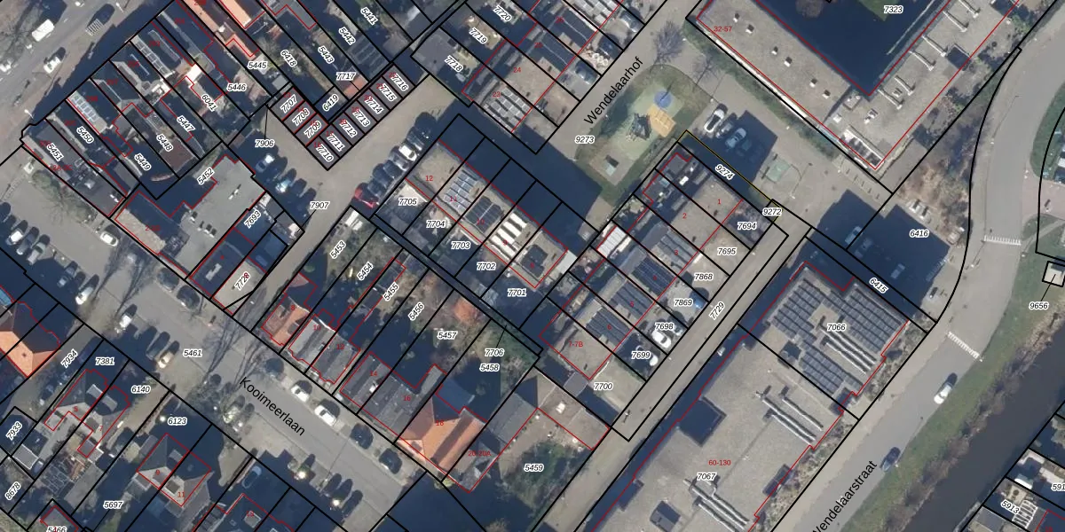 Gebruik de zoekbalk of klik op een perceel voor informatie over de adressen binnen dit perceel.