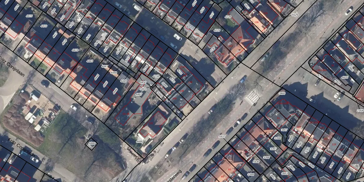 Gebruik de zoekbalk of klik op een perceel voor informatie over de adressen binnen dit perceel.