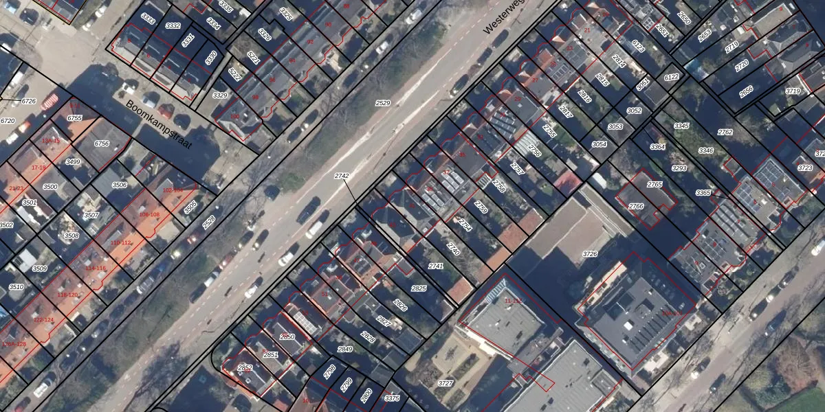 Gebruik de zoekbalk of klik op een perceel voor informatie over de adressen binnen dit perceel.