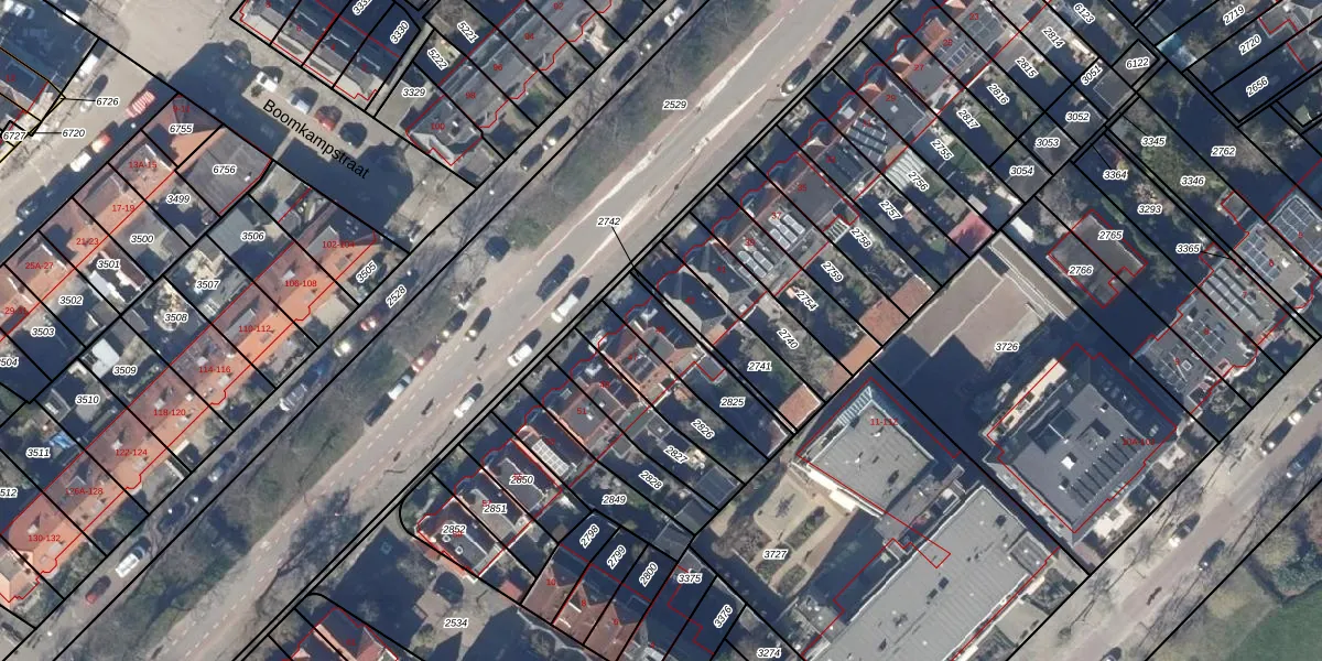 Gebruik de zoekbalk of klik op een perceel voor informatie over de adressen binnen dit perceel.