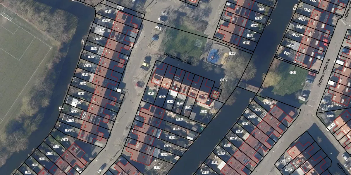 Het perceel waarop Westfalenstraat 39 staat heeft een oppervlakte van 132 m². Dit is een middelgroot perceel. De perceeloppervlakte wordt geregistreerd door het Kadaster. Gedetailleerde informatie over de maten van dit perceel kunt u vinden in het rapport Kadastrale kaart met maatvoering van Westfalenstraat 39.