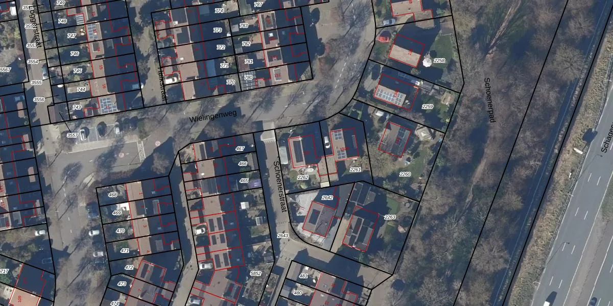 Gebruik de zoekbalk of klik op een perceel voor informatie over de adressen binnen dit perceel.