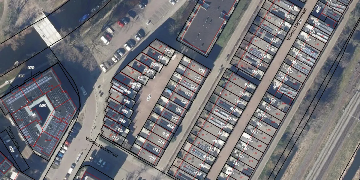 Het perceel waarop Willem Hedastraat 17 staat heeft een oppervlakte van 87 m². Dit is een klein perceel. De perceeloppervlakte wordt geregistreerd door het Kadaster. Gedetailleerde informatie over de maten van dit perceel kunt u vinden in het rapport Kadastrale kaart met maatvoering van Willem Hedastraat 17.