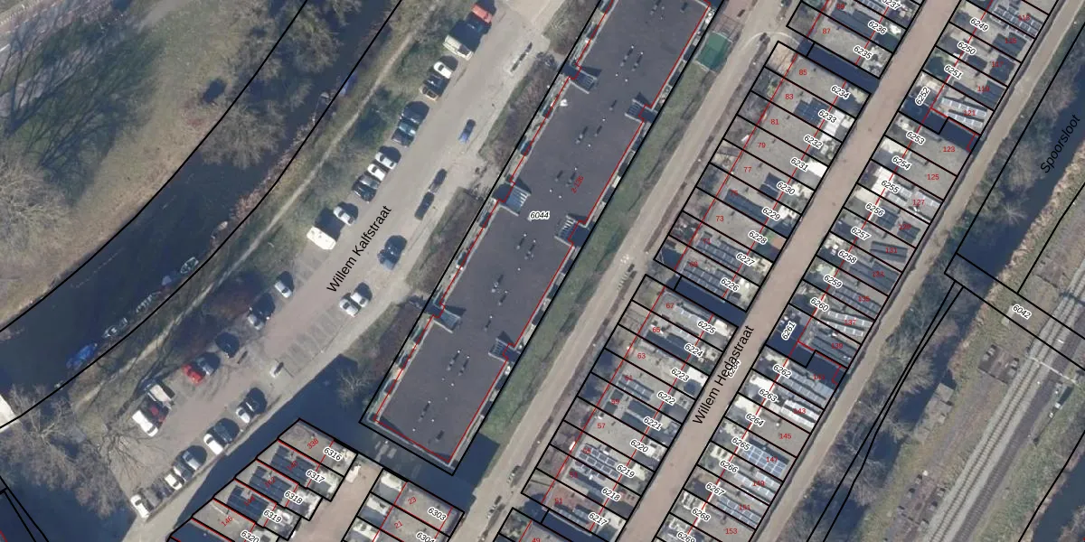 Het perceel waarop Willem Kalfstraat 104 staat heeft een oppervlakte van 1975 m². Dit is een zeer groot perceel. De perceeloppervlakte wordt geregistreerd door het Kadaster. Gedetailleerde informatie over de maten van dit perceel kunt u vinden in het rapport Kadastrale kaart met maatvoering van Willem Kalfstraat 104.