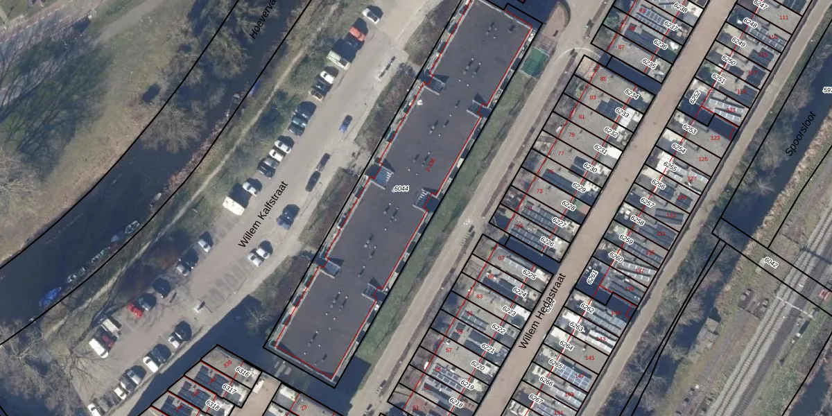 Het perceel waarop Willem Kalfstraat 106 staat heeft een oppervlakte van 1975 m². Dit is een zeer groot perceel. De perceeloppervlakte wordt geregistreerd door het Kadaster. Gedetailleerde informatie over de maten van dit perceel kunt u vinden in het rapport Kadastrale kaart met maatvoering van Willem Kalfstraat 106.