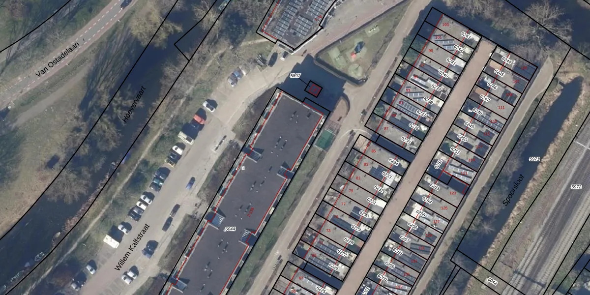 Het perceel waarop Willem Kalfstraat 118 staat heeft een oppervlakte van 1975 m². Dit is een zeer groot perceel. De perceeloppervlakte wordt geregistreerd door het Kadaster. Gedetailleerde informatie over de maten van dit perceel kunt u vinden in het rapport Kadastrale kaart met maatvoering van Willem Kalfstraat 118.