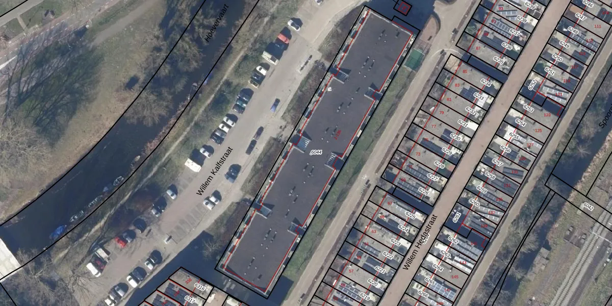 Het perceel waarop Willem Kalfstraat 26 staat heeft een oppervlakte van 1975 m². Dit is een zeer groot perceel. De perceeloppervlakte wordt geregistreerd door het Kadaster. Gedetailleerde informatie over de maten van dit perceel kunt u vinden in het rapport Kadastrale kaart met maatvoering van Willem Kalfstraat 26.