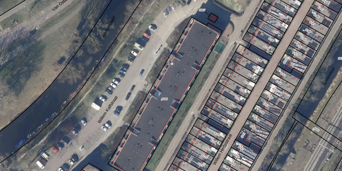 Het perceel waarop Willem Kalfstraat 54 staat heeft een oppervlakte van 1975 m². Dit is een zeer groot perceel. De perceeloppervlakte wordt geregistreerd door het Kadaster. Gedetailleerde informatie over de maten van dit perceel kunt u vinden in het rapport Kadastrale kaart met maatvoering van Willem Kalfstraat 54.