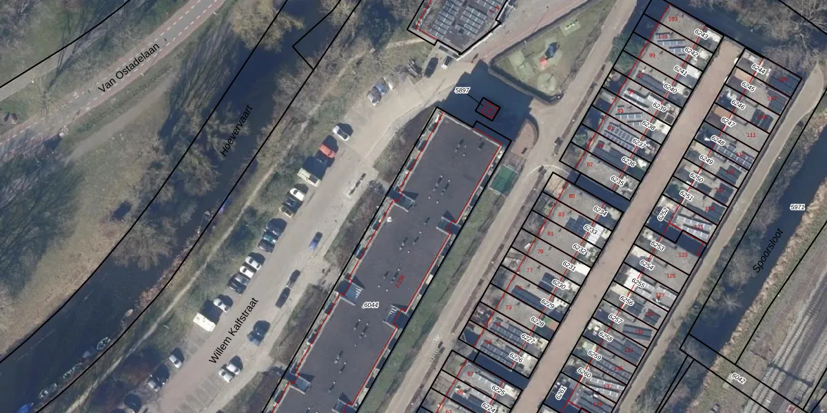 Het perceel waarop Willem Kalfstraat 74 staat heeft een oppervlakte van 1975 m². Dit is een zeer groot perceel. De perceeloppervlakte wordt geregistreerd door het Kadaster. Gedetailleerde informatie over de maten van dit perceel kunt u vinden in het rapport Kadastrale kaart met maatvoering van Willem Kalfstraat 74.