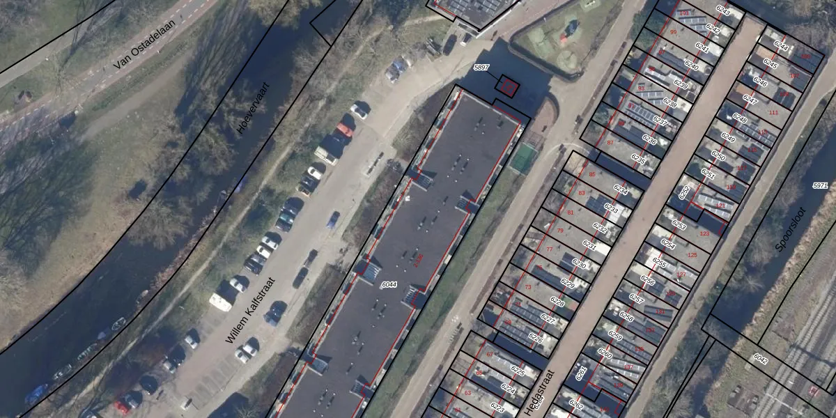 Het perceel waarop Willem Kalfstraat 76 staat heeft een oppervlakte van 1975 m². Dit is een zeer groot perceel. De perceeloppervlakte wordt geregistreerd door het Kadaster. Gedetailleerde informatie over de maten van dit perceel kunt u vinden in het rapport Kadastrale kaart met maatvoering van Willem Kalfstraat 76.