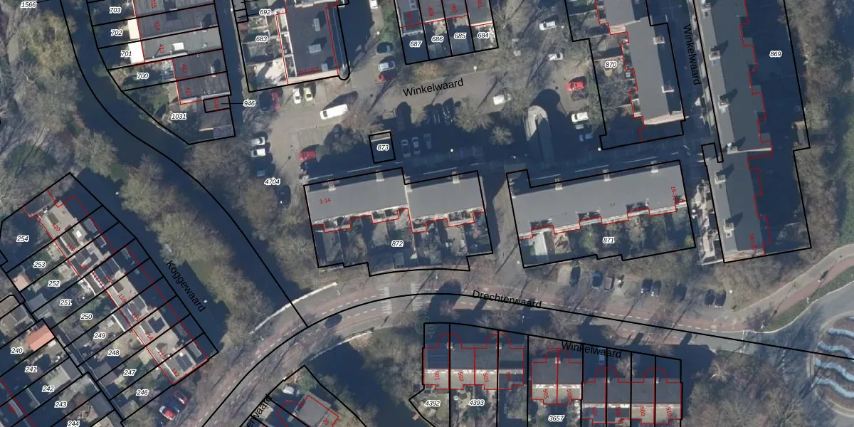 Het perceel waarop Winkelwaard 10 staat heeft een oppervlakte van 869 m². Dit is een groot perceel. De perceeloppervlakte wordt geregistreerd door het Kadaster. Gedetailleerde informatie over de maten van dit perceel kunt u vinden in het rapport Kadastrale kaart met maatvoering van Winkelwaard 10.