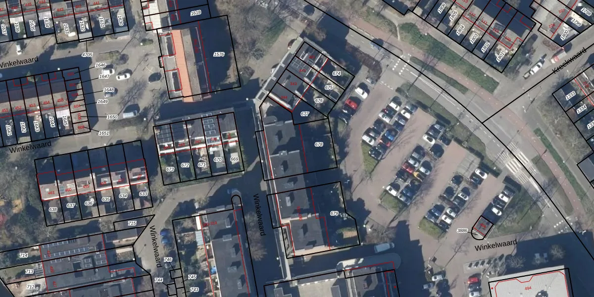 Het perceel waarop Winkelwaard 337 staat heeft een oppervlakte van 504 m². Dit is een groot perceel. De perceeloppervlakte wordt geregistreerd door het Kadaster. Gedetailleerde informatie over de maten van dit perceel kunt u vinden in het rapport Kadastrale kaart met maatvoering van Winkelwaard 337.