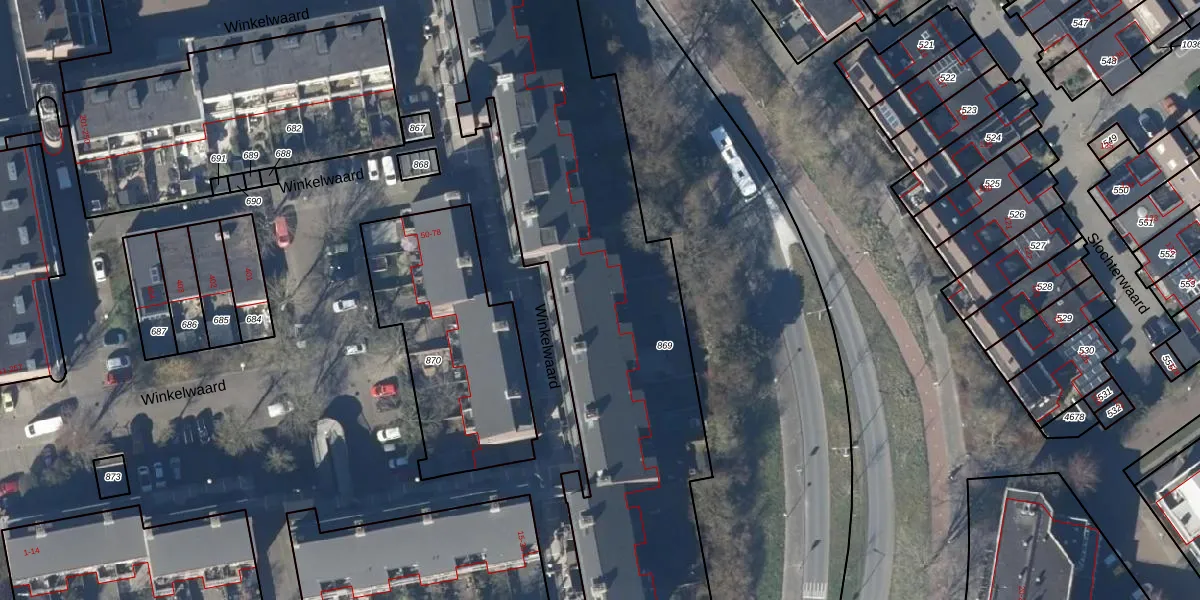 Winkelwaard 71 is gelegen op kadastraal perceel AMR01L869. Deze kadastrale aanduiding is uniek en wordt gebruikt door het Kadaster om eigendomsrechten en andere zakelijke rechten vast te leggen. Het perceel maakt onderdeel uit van de kadastrale gemeente Alkmaar.