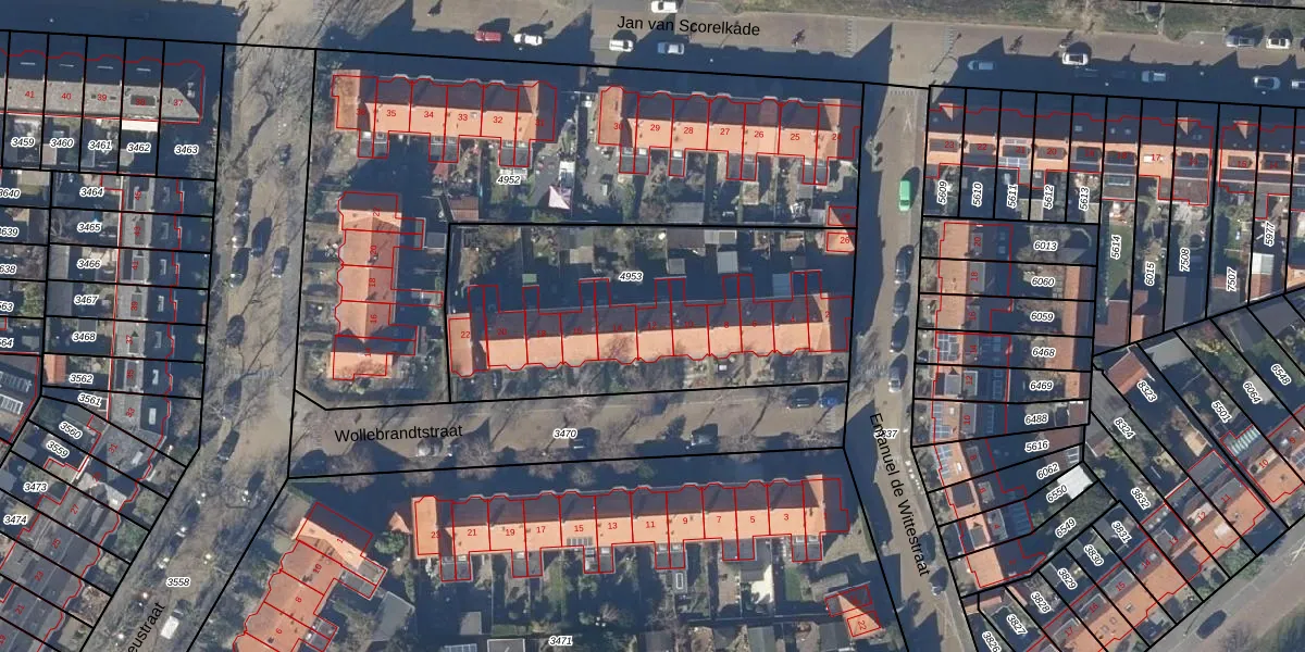 Het perceel waarop Wollebrandtstraat 12 staat heeft een oppervlakte van 1585 m². Dit is een zeer groot perceel. De perceeloppervlakte wordt geregistreerd door het Kadaster. Gedetailleerde informatie over de maten van dit perceel kunt u vinden in het rapport Kadastrale kaart met maatvoering van Wollebrandtstraat 12.