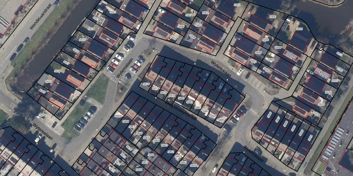 Gebruik de zoekbalk of klik op een perceel voor informatie over de adressen binnen dit perceel.