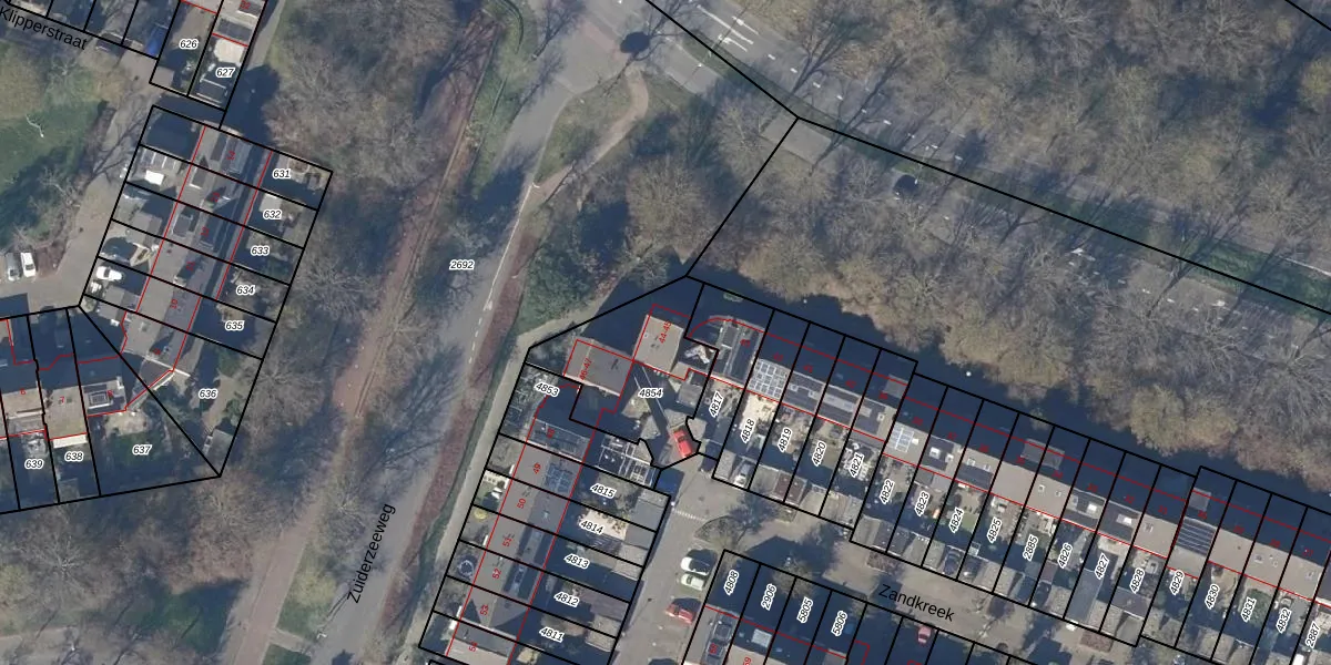 Zandkreek 45 is gelegen op kadastraal perceel AMR01K4854. Deze kadastrale aanduiding is uniek en wordt gebruikt door het Kadaster om eigendomsrechten en andere zakelijke rechten vast te leggen. Het perceel maakt onderdeel uit van de kadastrale gemeente Alkmaar.