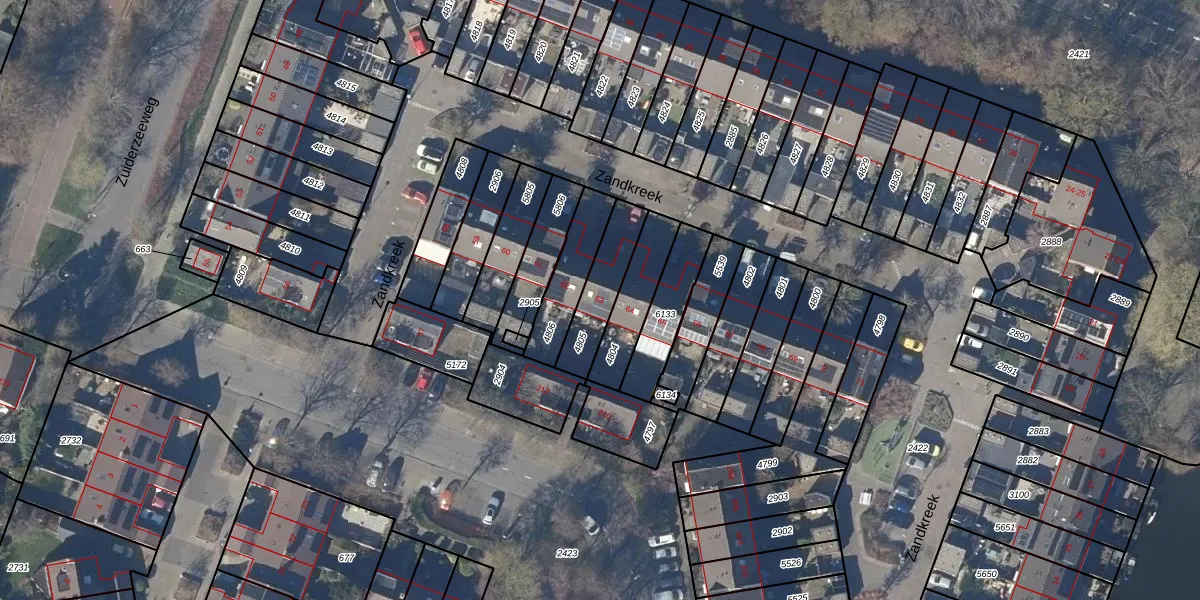 Zandkreek 63 is gelegen op kadastraal perceel AMR01K4805. Deze kadastrale aanduiding is uniek en wordt gebruikt door het Kadaster om eigendomsrechten en andere zakelijke rechten vast te leggen. Het perceel maakt onderdeel uit van de kadastrale gemeente Alkmaar.