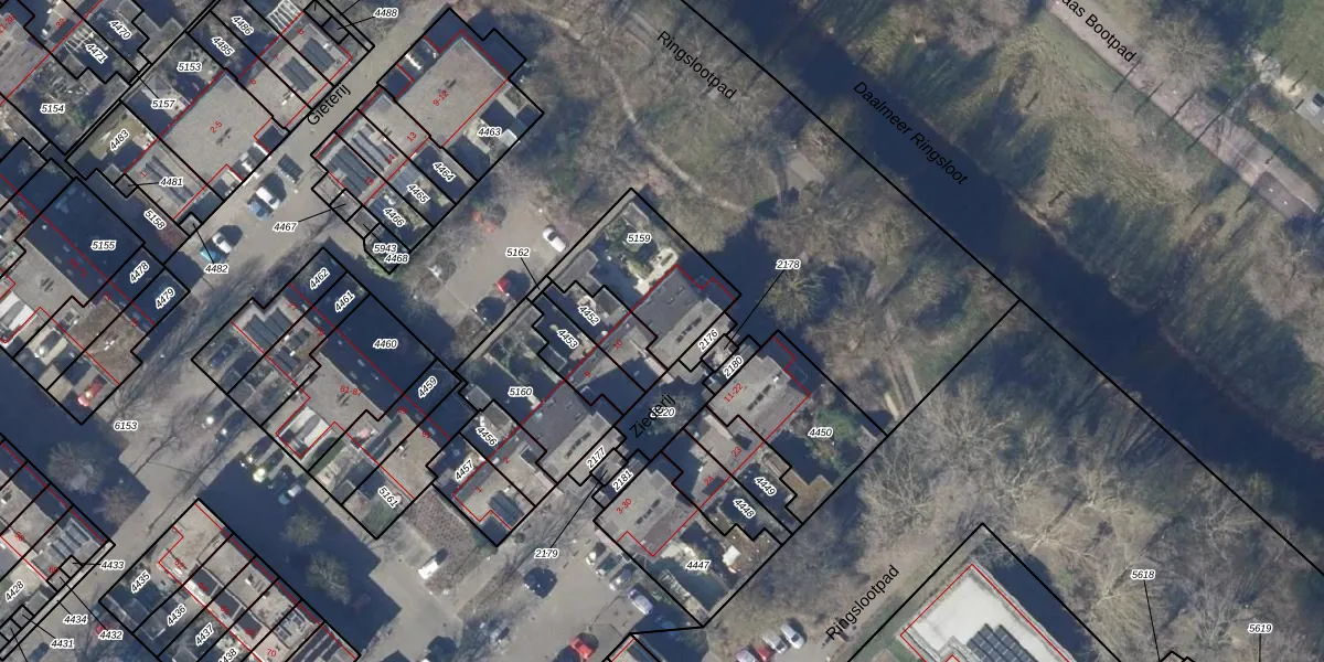 Het perceel waarop Ziederij 12 staat heeft een oppervlakte van 348 m². Dit is een groot perceel. De perceeloppervlakte wordt geregistreerd door het Kadaster. Gedetailleerde informatie over de maten van dit perceel kunt u vinden in het rapport Kadastrale kaart met maatvoering van Ziederij 12.