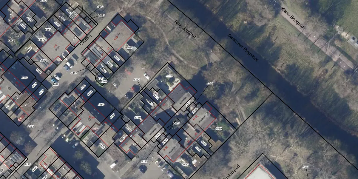 Het perceel waarop Ziederij 16 staat heeft een oppervlakte van 348 m². Dit is een groot perceel. De perceeloppervlakte wordt geregistreerd door het Kadaster. Gedetailleerde informatie over de maten van dit perceel kunt u vinden in het rapport Kadastrale kaart met maatvoering van Ziederij 16.