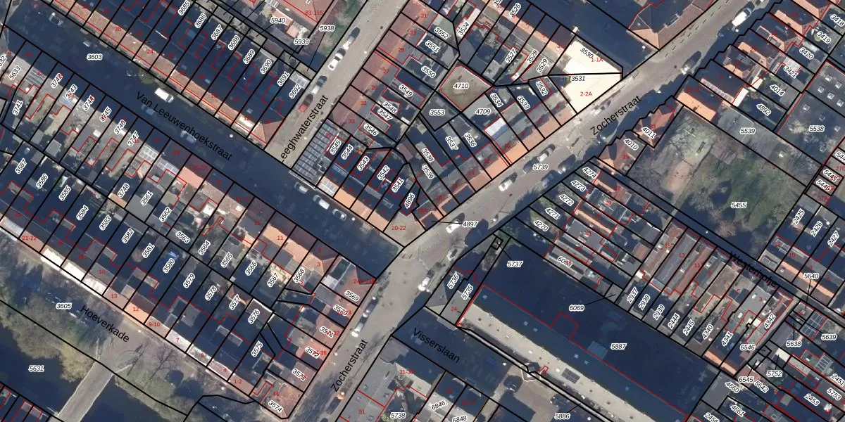 Het perceel waarop Zocherstraat 18-A staat heeft een oppervlakte van 39 m². Dit is een klein perceel. De perceeloppervlakte wordt geregistreerd door het Kadaster. Gedetailleerde informatie over de maten van dit perceel kunt u vinden in het rapport Kadastrale kaart met maatvoering van Zocherstraat 18-A.