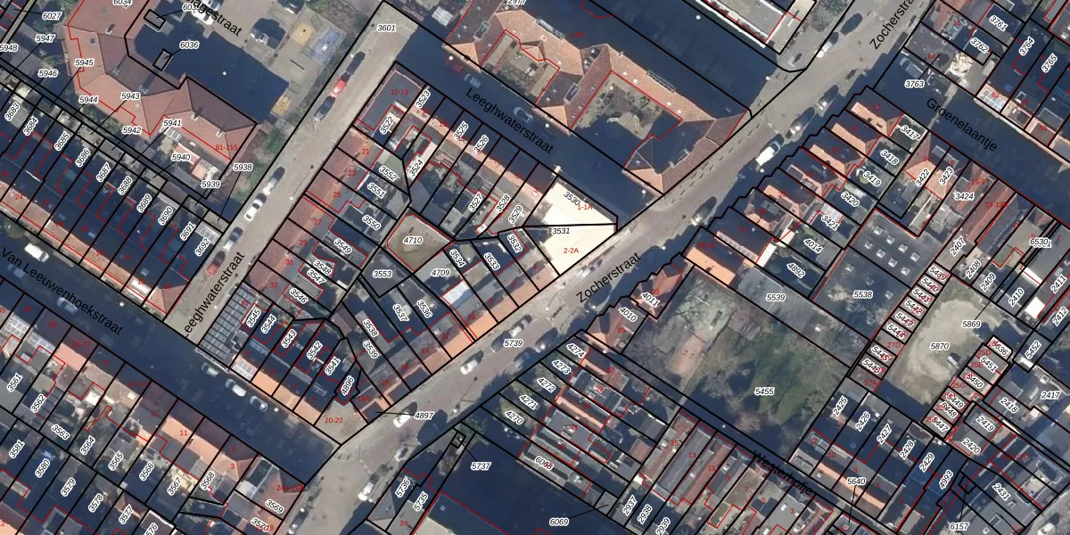 Gebruik de zoekbalk of klik op een perceel voor informatie over de adressen binnen dit perceel.