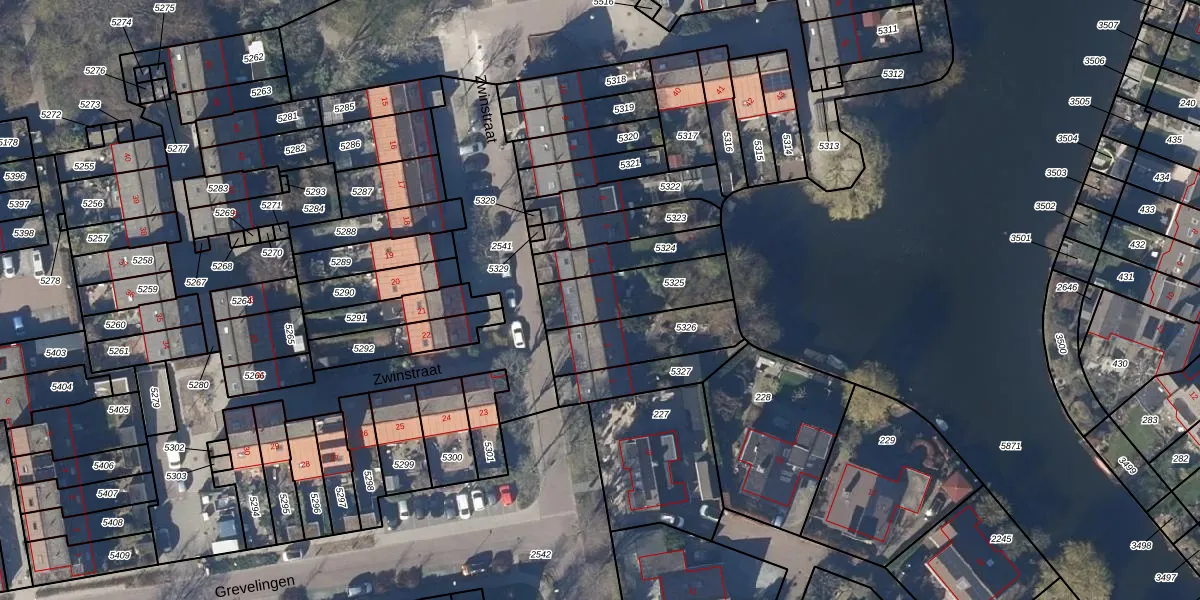 Gebruik de zoekbalk of klik op een perceel voor informatie over de adressen binnen dit perceel.