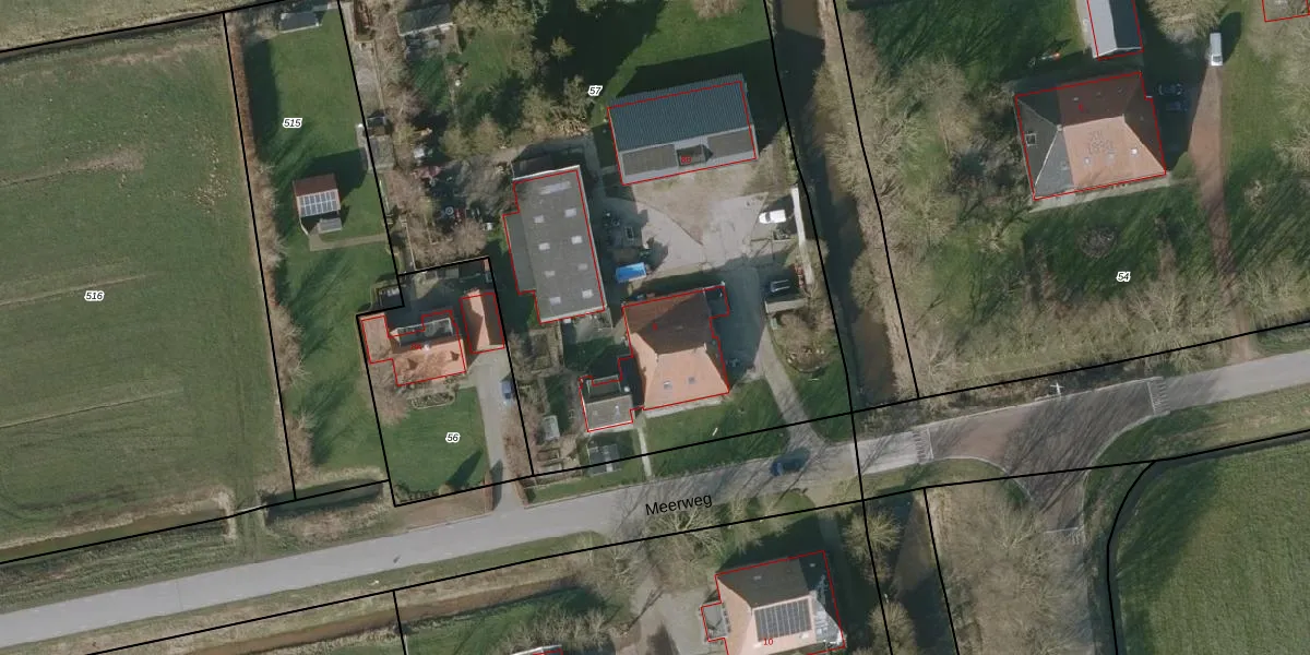 Het perceel waarop Meerweg 8 staat heeft een oppervlakte van 4555 m². Dit is een zeer groot perceel. De perceeloppervlakte wordt geregistreerd door het Kadaster. Gedetailleerde informatie over de maten van dit perceel kunt u vinden in het rapport Kadastrale kaart met maatvoering van Meerweg 8.