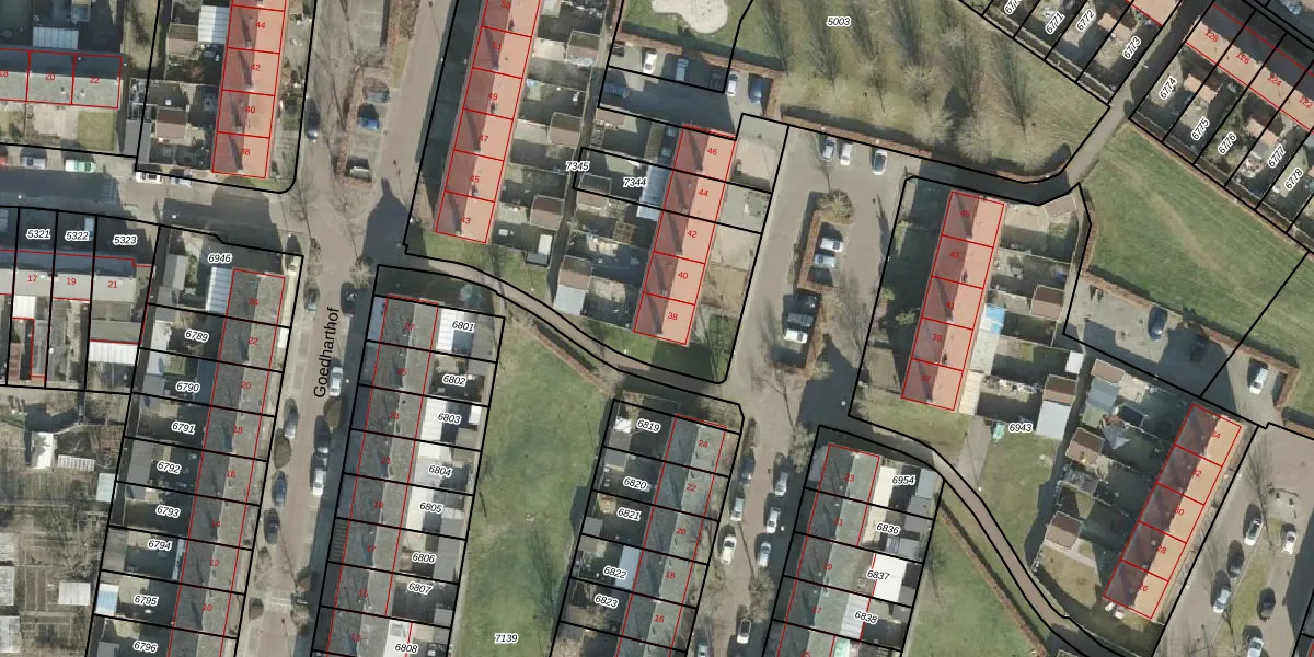 Het perceel waarop Aalbersehof 38 staat heeft een oppervlakte van 2060 m². Dit is een zeer groot perceel. De perceeloppervlakte wordt geregistreerd door het Kadaster. Gedetailleerde informatie over de maten van dit perceel kunt u vinden in het rapport Kadastrale kaart met maatvoering van Aalbersehof 38.