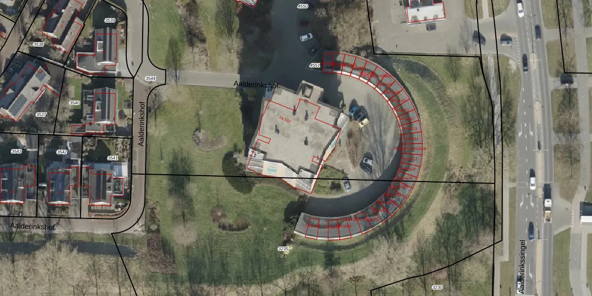 Aalderinkshof 104 is gelegen op kadastraal perceel AML01I4550. Deze kadastrale aanduiding is uniek en wordt gebruikt door het Kadaster om eigendomsrechten en andere zakelijke rechten vast te leggen. Het perceel maakt onderdeel uit van de kadastrale gemeente Ambt-Almelo.