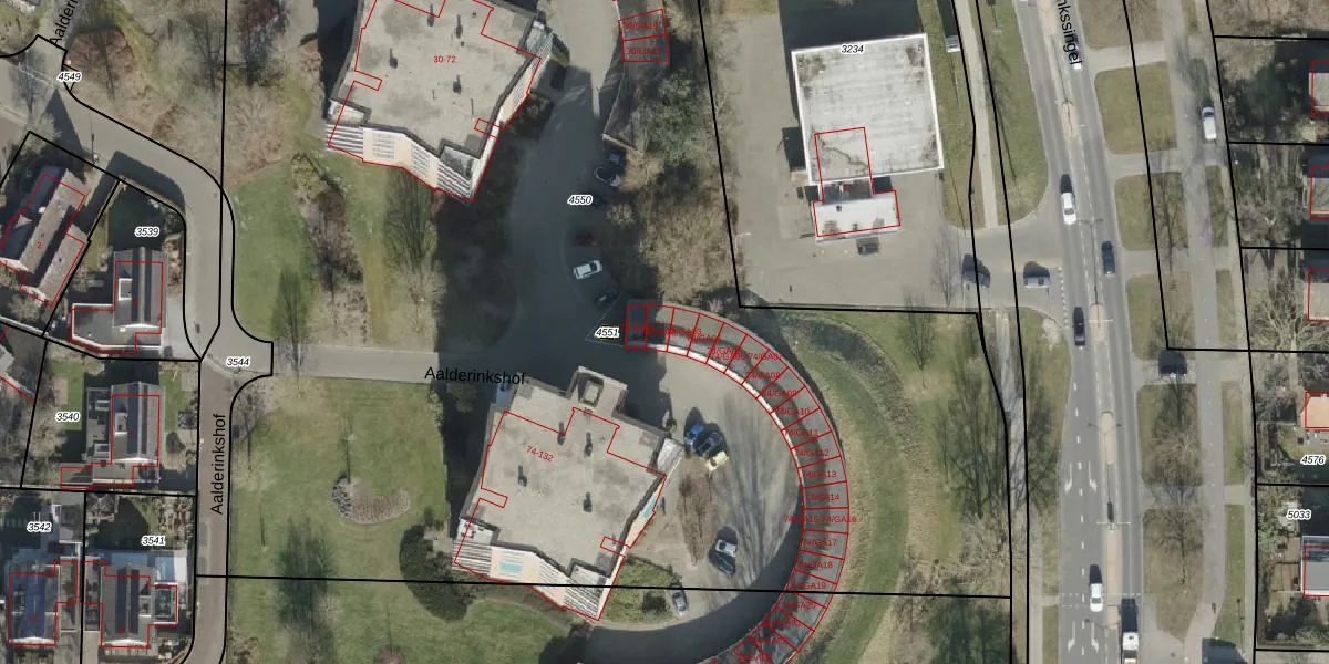 Aalderinkshof 74-GA02 is gelegen op kadastraal perceel AML01I4550. Deze kadastrale aanduiding is uniek en wordt gebruikt door het Kadaster om eigendomsrechten en andere zakelijke rechten vast te leggen. Het perceel maakt onderdeel uit van de kadastrale gemeente Ambt-Almelo.