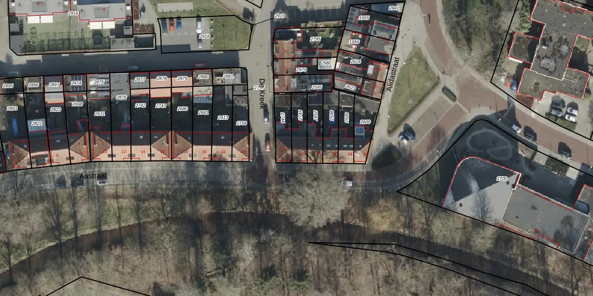 Aastraat 28 is gelegen op kadastraal perceel AML01L2745. Deze kadastrale aanduiding is uniek en wordt gebruikt door het Kadaster om eigendomsrechten en andere zakelijke rechten vast te leggen. Het perceel maakt onderdeel uit van de kadastrale gemeente Ambt-Almelo.