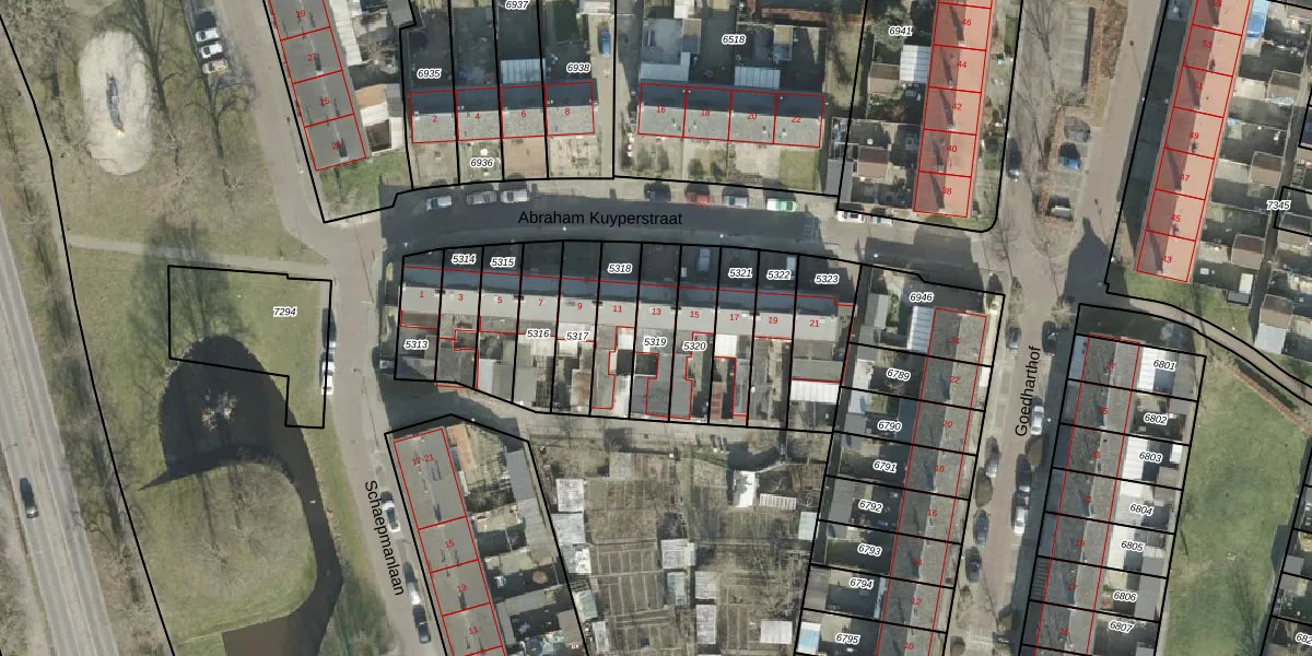 Gebruik de zoekbalk of klik op een perceel voor informatie over de adressen binnen dit perceel.
