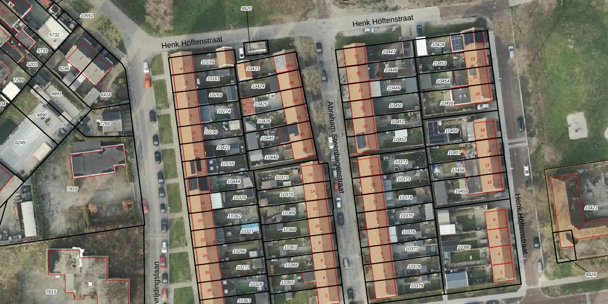 Gebruik de zoekbalk of klik op een perceel voor informatie over de adressen binnen dit perceel.