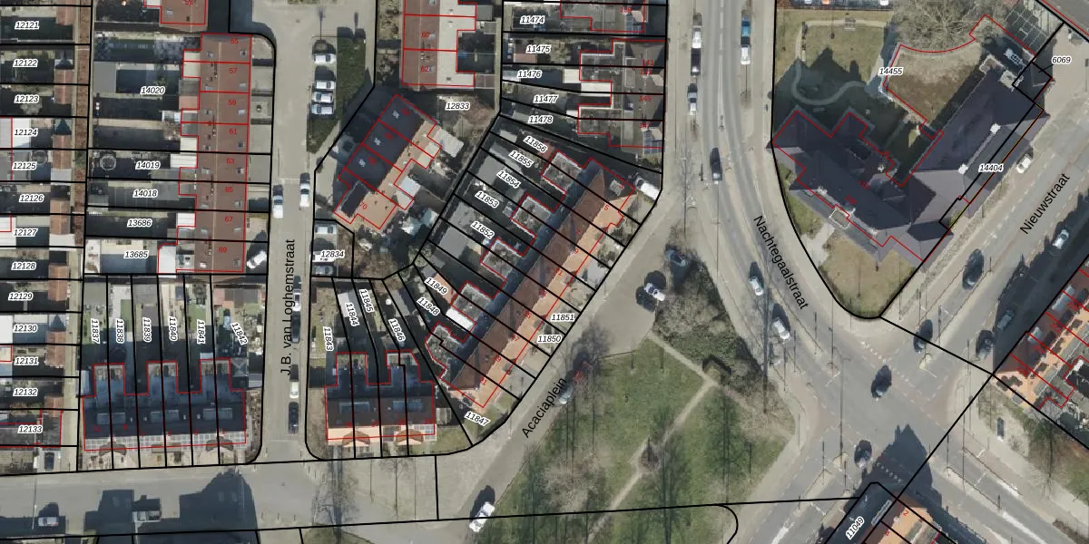 Gebruik de zoekbalk of klik op een perceel voor informatie over de adressen binnen dit perceel.
