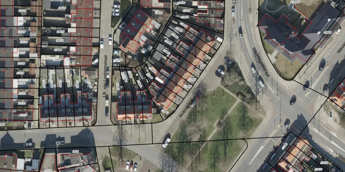 Gebruik de zoekbalk of klik op een perceel voor informatie over de adressen binnen dit perceel.