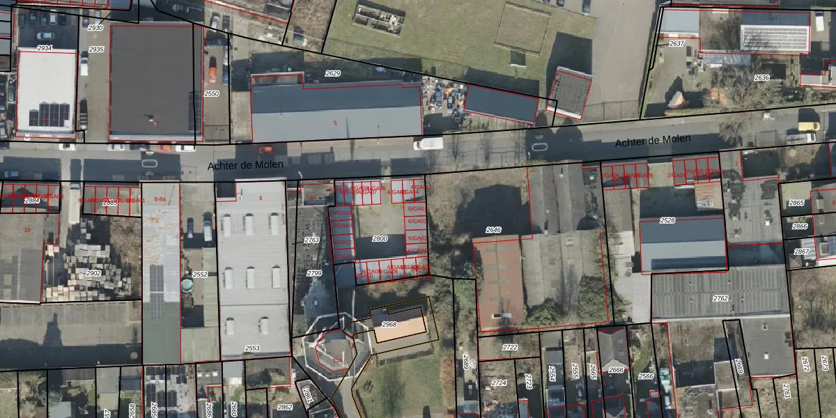 Achter de Molen 6-GA01 is gelegen op kadastraal perceel AML01L2800. Deze kadastrale aanduiding is uniek en wordt gebruikt door het Kadaster om eigendomsrechten en andere zakelijke rechten vast te leggen. Het perceel maakt onderdeel uit van de kadastrale gemeente Ambt-Almelo.