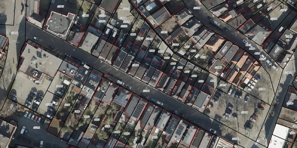 Gebruik de zoekbalk of klik op een perceel voor informatie over de adressen binnen dit perceel.