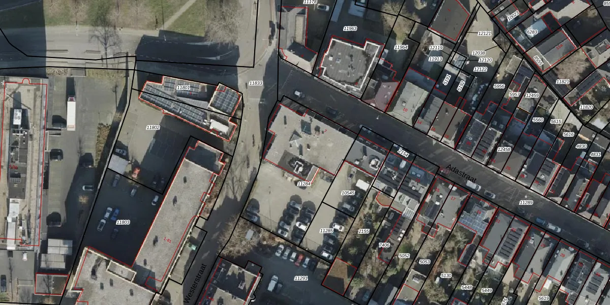 Gebruik de zoekbalk of klik op een perceel voor informatie over de adressen binnen dit perceel.